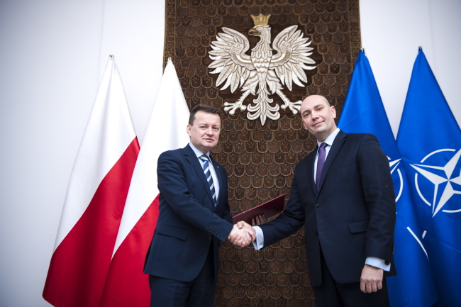 Na zdjęciu: minister obrony narodowej Mariusz Błaszczak powołuje na stanowisko wiceministra resortu Sebastiana Chwałka.