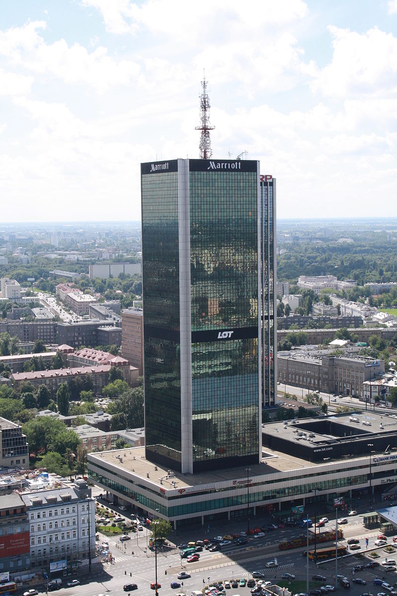 Hotel Marriott w Warszawie ma 170 metrów wysokości i 42 kondygnacje.