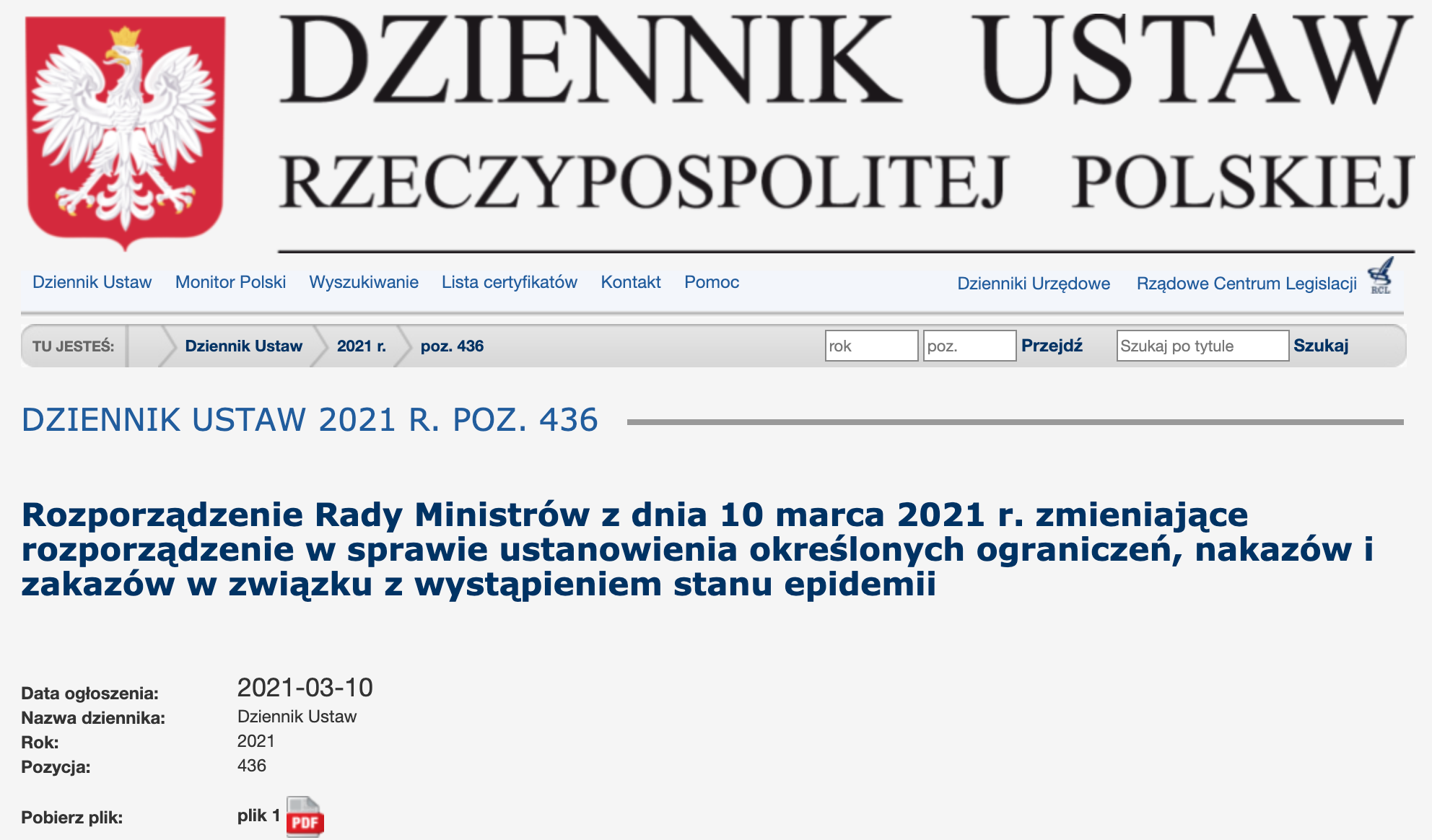 W Dzienniku Ustaw opublikowano nowelizację rozporządzenia w sprawie ustanowienia określonych ograniczeń, nakazów i zakazów w związku z wystąpieniem stanu epidemii. Większość jego przepisów zacznie obowiązywać od czwartku (11 marca).