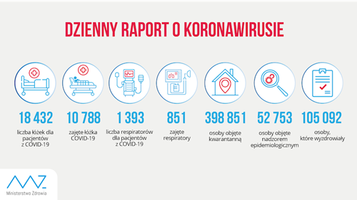 Z powodu COVID-19 zmarło 16 osób, natomiast z powodu współistnienia COVID-19 z innymi schorzeniami zmarło 137 osób - poinformował resort zdrowia.