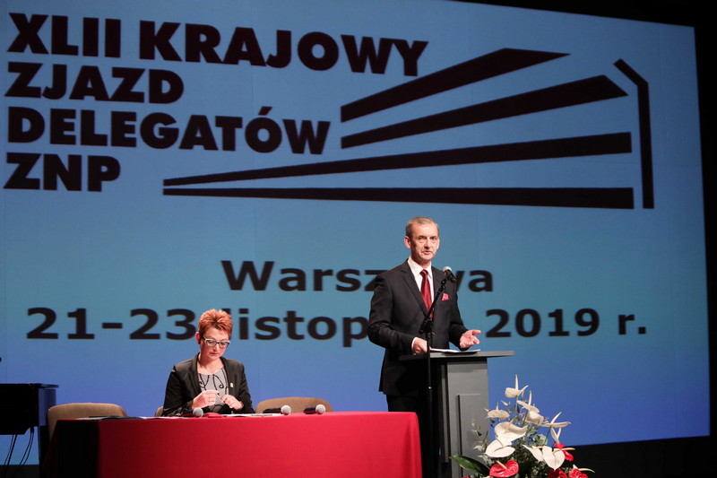42. Krajowy Zjazd Delegatów Związku Nauczycielstwa Polskiego rozpoczął się w czwartek. Oprócz przyjęcia uchwał dot. głównych kierunków działań związku na kadencję 2019-2024, dokonał też wybór władz na nową kadencję. Uczestnicy zjazdu zdecydowali w głosowaniu, że związkiem nadal kierować będzie Sławomir Broniarza, a jego zastępcami będą, tak jak dotąd, Krzysztof Baszczyński i Grzegorz Gruchlik.
