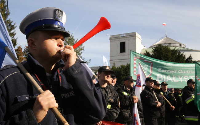 Miasteczko namiotowe protestujących ustawiono przed Sejmem 5 października. Związkowcy domagają się zapewnienia środków na dodatkowe etaty w poszczególnych służbach "z uwagi na sytuację międzynarodową, a w szczególności wyzwania związane z migracją cudzoziemców mającą bezpośredni wpływ na bezpieczeństwo państwa".