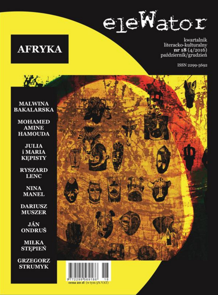 Temat wiodący "eleWatora" to Afryka. W środku znajdziemy teksty m.in. o nigeryjskim przemyśle filmowym (Miłka Stępień), Afropolakach (Judyta Krawczyk) oraz afrykańskich wątkach w szczecińskim muzeum (Marta Krawczuk). Do tego m.in. nowa proza Dariusza Muszera i Wojciecha Klęczara czy poezja Zbigniewa Macheja.