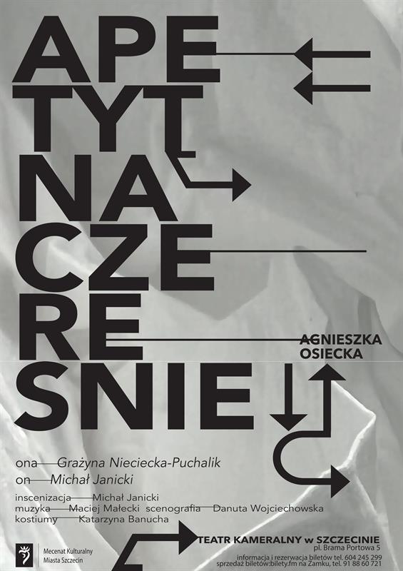 Teatr Kameralny w Szczecinie zaprasza na premierowy spektakl oparty na tekście „Apetyt na czereśnie” Agnieszki Osieckiej. W sobotę i w niedzielę o g. 19.