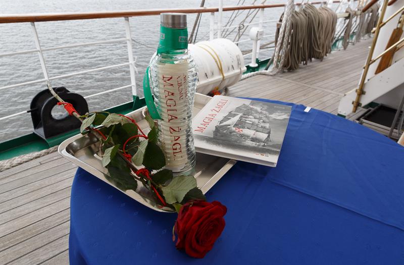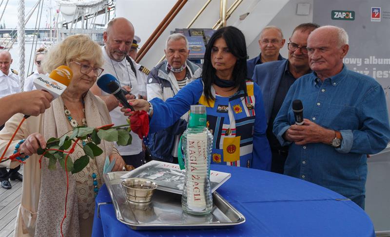 – Zgodnie z morskim obyczajem, ja, matka chrzestna, chrzczę dziś i woduję album przedstawiający niezwykłej urody żaglowce. Fotografie wykonał po mistrzowsku Marek Czasnojć, a album wydało szczecińskie wydawnictwo ZAPOL. A zatem przez lądy, morza, oceany, podążaj, książko, do czytelników. Nadaję ci imię „Magia Żagli” – wypowiedziała uroczyście Krystyna Pohl.
