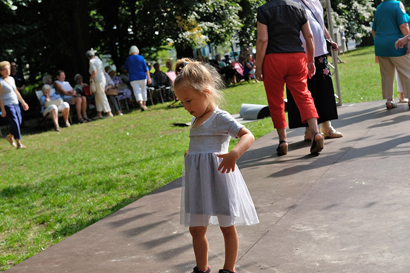 - Proszę sobie zapisać, żeby ten parkiet był trochę większy, niech pani sobie to zaznaczy i przekaże, komu trzeba - mówi w rozmowie z „Kurierem”. - Dwa tygodnie temu po prostu nie było na nim miejsca. No i gdyby nam zrobili nad nim jeszcze jakieś zadaszenie, bo czasem pięknie, ciepło, zabawa na sto dwa i deszczyk zaczyna padać. A przecież nikt z parkietu z takiego powodu nie zejdzie.