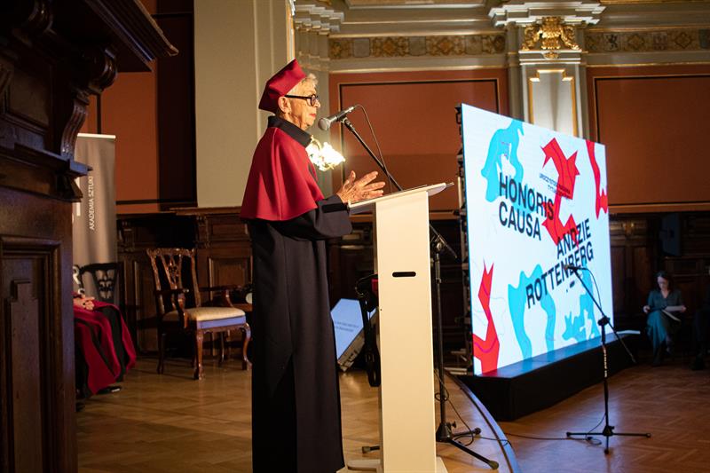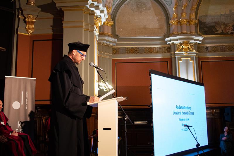 W piątek 15 listopada Akademia Sztuki w Szczecinie uhonorowała Andę Rottenberg tytułem doktora honoris causa w dyscyplinie sztuk plastycznych i konserwacji dzieł sztuki. Uroczystość odbyła się w Pałacu Ziemstwa Pomorskiego. Ważnym i poruszającym punktem wydarzenia był wykład Andy Rottenberg, w którym krytyczka stawiała pytania o wolność sztuki i niezgodę na niesprawiedliwość.