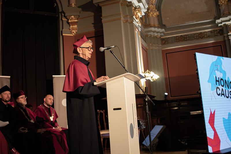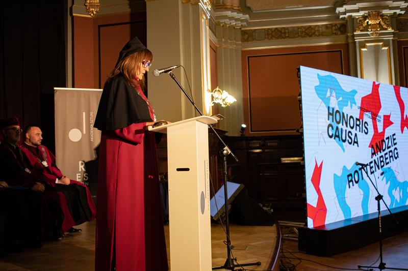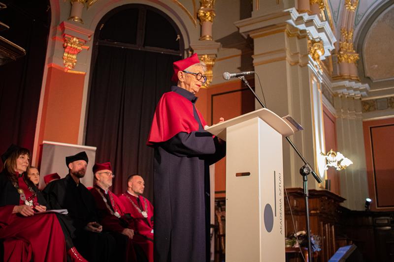 - Doktor honoris causa to największe wyróżnienie w świecie akademickim i wielki dowód uznania naszej społeczności akademickiej, który kierujemy do wybitnej postaci, pani Andy Rottenberg - mówiła Mirosława Jarmołowicz, rektor Akademii Sztuki. - Dla naszej uczelni, która reprezentuje jako jedyna w Polsce obie dyscypliny sztuki: muzyczną i plastyczną oraz jest najmłodszą uczelnią artystyczną w Polsce, to ogromny zaszczyt i honor móc wyróżnić tym tytułem wybitną historyczkę i krytyczkę sztuki, kuratorkę, publicystkę, organizatorkę polskiego życia publicznego, nadając tę najwyższą godność akademicką.