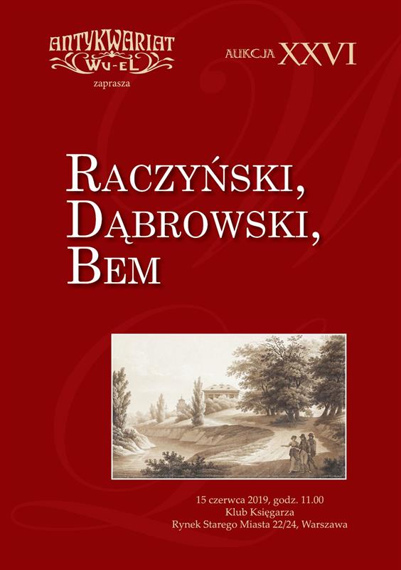 Szczeciński antykwariat "Wu - eL" Wojciecha Lizaka 15 czerwca o g. 11 rozpoczyna licytację zatytułowaną „Raczyński, Dąbrowski, Bem”. Obiekty będzie można oglądać od godz. 8.30.
