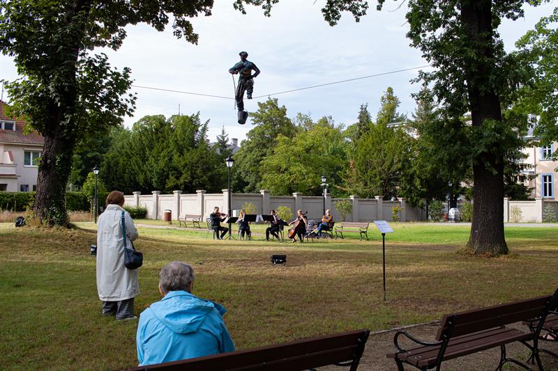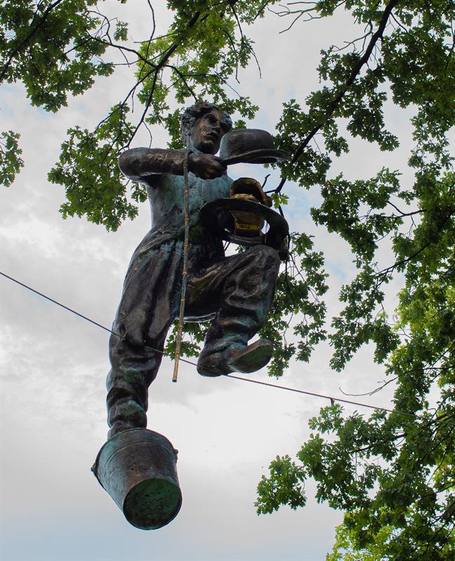 W ogrodzie Willi Lentza w Szczecinie pojawiła się w sobotę 29 lipca nowa rzeźba z cyklu "Ikony Kultury". To "Charlie Chaplin. Rzeźba balansująca" zawieszona na linie kilka metrów nad ziemią. Publiczność mogła tego dnia po raz pierwszy podziwiać instalację oraz spotkać się z jej autorem, Jerzym Kedziorą.