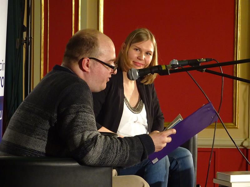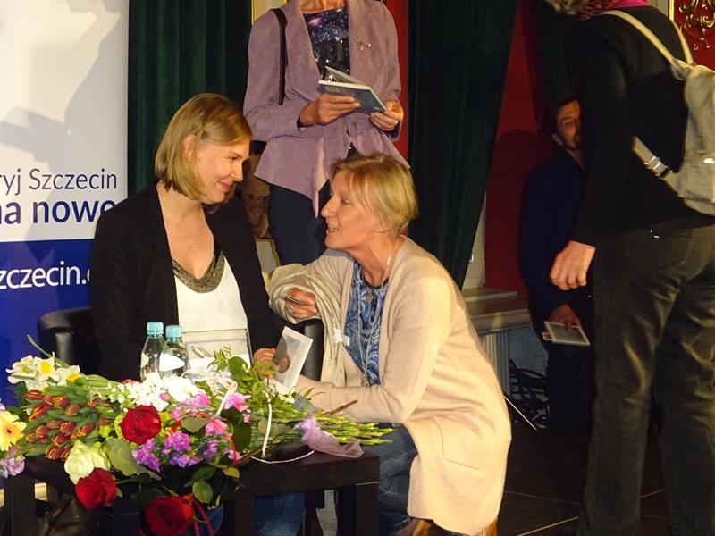 W miniony czwartek, 26 kwietnia, w Domu Kultury 13 Muz odbyło się w ramach cyklicznych spotkań pn. „Literackie Czwartki” spotkanie z autorką, która na stałe mieszka we Frankfurcie nad Menem, gdzie jest konsultantem i trenerem w zakresie rozwijania talentów i reorientacji zawodowej w międzynarodowej korporacji. Poprowadził je interesująco „specjalista od Kafki” Damian Romanik, a Jolanta Jonaszko mówiła o codziennej intymnej rozmowie z dziadkiem, który odszedł. Lekko stremowana, ale bardzo naturalna, co sprawiało, że słuchano jej w dużym skupieniu. Gdy czytała fragment swojej debiutanckiej książki, trudno było nie oprzeć się wzruszeniu i refleksjom dotyczącym uczuć, życia, śmierci, duszy, przemijania. Ale też przy okazji można było zauważyć wartką narrację i niezwykle dojrzały jak na debiutantkę pisarski warsztat.