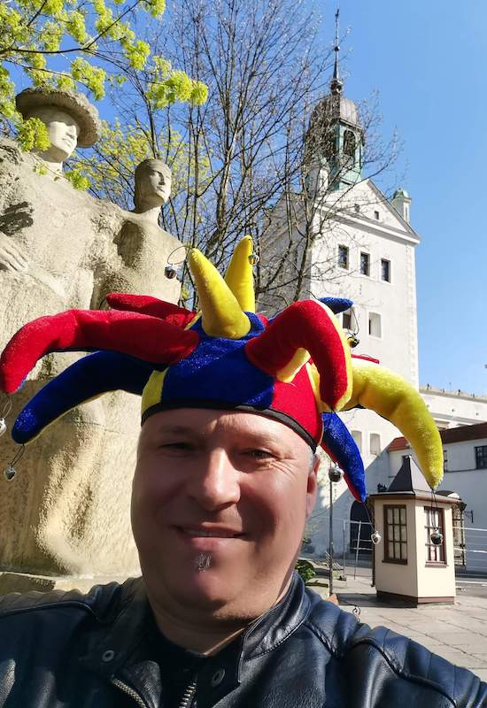 - Ta interakcja z drugim człowiekiem jest bezcenna. Teraz przed kamerą staram się odtworzyć to, co robiłem dotąd w prawdziwym zwiedzaniu, do jakiego jesteśmy przyzwyczajeni - opowiada przewodnik. - Szukając pozytywów w obecnej sytuacji, po dziesięciu latach powróciłem do formy przewodnika bajkowego, który zszedł z zegara zamkowego. Na tym zegarze znajduje się bowiem błazen Mikołaj. Choć nie był to jedyny zamkowy błazen. Ale ja wcielam się właśnie w błazna Mikołaja, a odpowiednio dobrana czapka robi furorę i podoba się oglądającym. Właśnie w tej nieco lżejszej odsłonie pokazuję moje ukochane miejsce, czyli zamek. Staram się nie wymądrzać, ale za pomocą lekkiego przekazu przemycać też czasem trudne tematy czy sformułowania. Wszyscy przecież potrzebujemy odskoczni i nieco humoru podczas kwarantanny społecznej. Podczas realizacji filmików, część ujęć jest kręcona nie tylko w tej naszej obecnie zamkniętej strefie zamkowej, ale też przed zamkiem. Reakcja przechodniów na mnie w tej śmiesznej czapce pokazała mi, że idziemy w dobrą stronę. Te przypadkowe osoby mówiły nawet, że "wreszcie coś wesołego w tym niewesołym czasie".