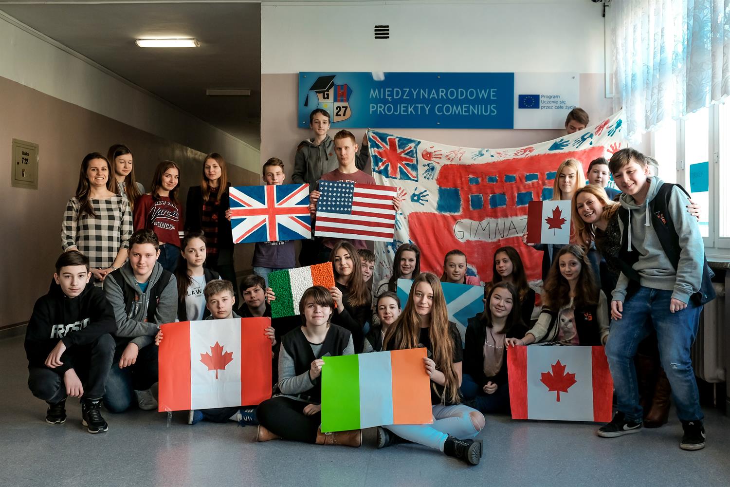 Uczniowie Gimnazjum nr 27 uczestniczyli w zajęciach interaktywnych po angielsku, mieli okazję też poznać sporo piosenek w języku angielskicm. Podczas zajęć z wykorzystaniem metody outdoor mogli stworzyć swój doble decker z użyciem prześcieradeł, zaś w środę odbyły się przygotowane przez gimnajalistów prezentacje poszczególnych krajów.