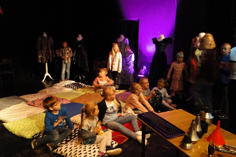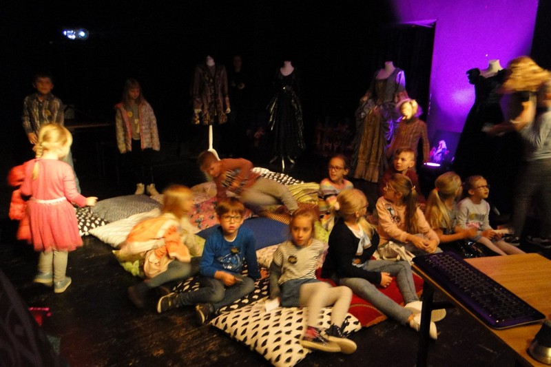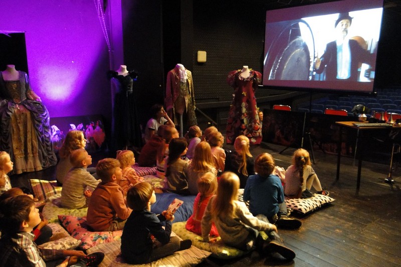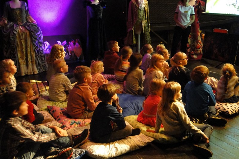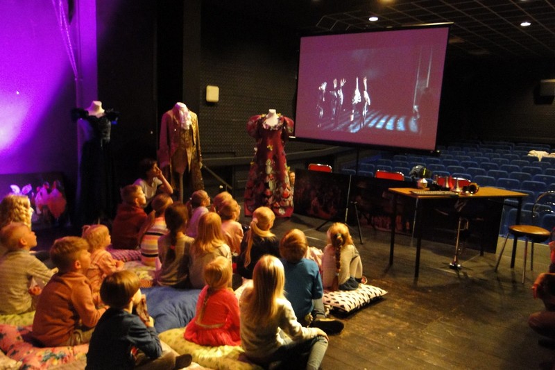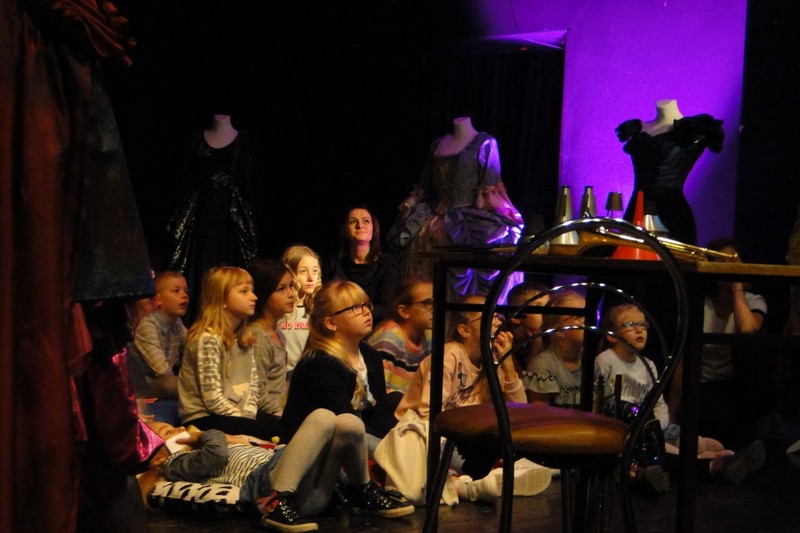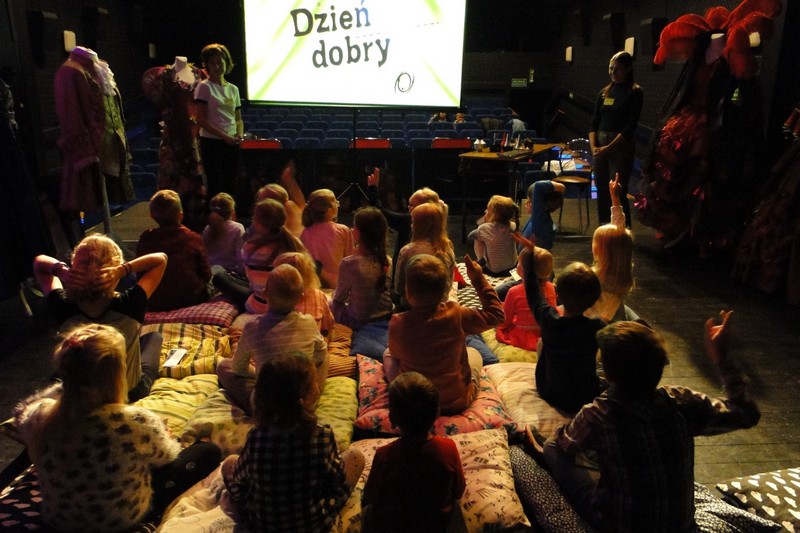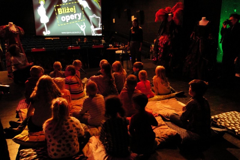 W czasie zajęć młodzi gryfinianie zajęli miejsca na scenie, na kolorowych poduchach, w otoczeniu manekinów z kostiumami, elementów scenografii, luster i barwnych plansz ze zdjęciami ze spektakli. Dzięki interesującej multimedialnej prezentacji dzieci miały okazję poznać m.in. pracę całego zespołu zaangażowanego w przygotowanie operowego spektaklu, a także odbyć wirtualny spacer po teatrze.