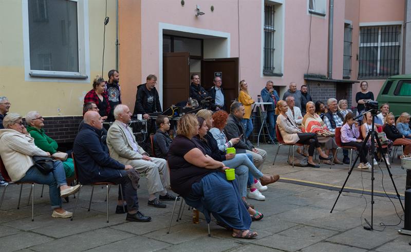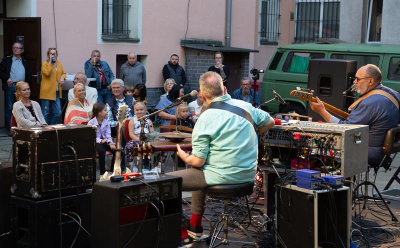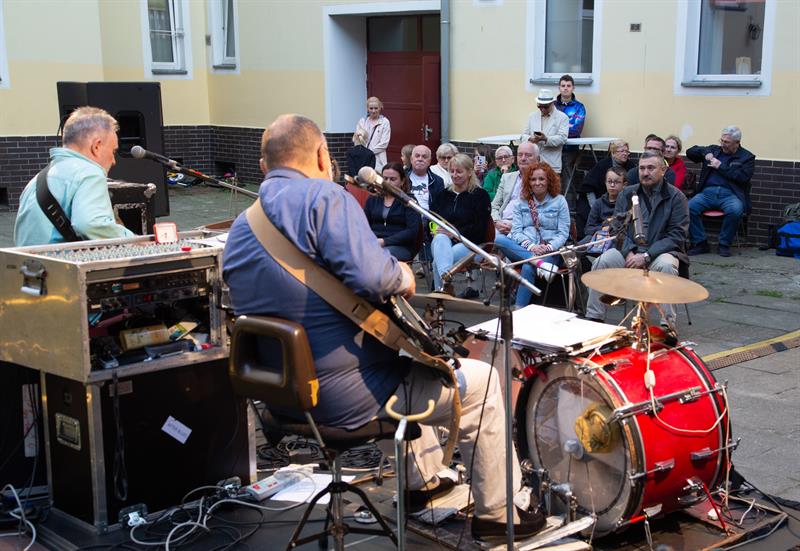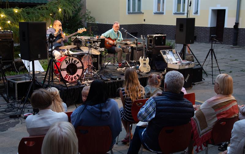 Pod pięknym modrzewiem, na podwórku przy ulicach: Langiewicza 1/ ks. Bogusława X 27, zabrzmiały klasyki muzyki bluesowej, utwory wspomnianego zespołu (w tym te z tekstami Szymona Kaczmarka, który poprowadził - fantastycznie! - wydarzenie) oraz grupy Breakout. Do wspólnego grania (tak, tak) i śpiewania zaproszono również publiczność!