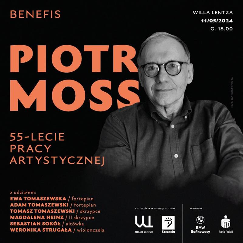 W programie jubileuszowego koncertu Piotra Mossa znajdą się w Szczecinie następujące utwory: „Dialogi – na skrzypce i fortepian”, „Utwór na altówkę i fortepian”, „Duety na dwoje skrzypiec”, „Polonez na wiolonczelę i fortepian”, Kwartet smyczkowy CHAGALL. Wystąpią: String Quartet Berlin w składzie: T. Tomaszewski – I skrzypce, M. Heinz – II skrzypce, S. Sokół – altówka i W. Strugała – wiolonczela oraz pianiści A. Tomaszewski i E. Tomaszewska.