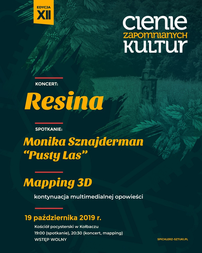 O godz. 20.30 w kościele zacznie się koncert „Resina – subtelność i niepokój”. Wystąpi Karolina Rec (Resina), kompozytorka i wiolonczelistka, która zaprezentuje utwory ze swego drugiego albumu „Traces”. W zaproszeniu czytamy: „Resina twórczo przetwarza brzmienia wiolonczeli z użyciem prostej elektroniki, okrasza je motywami wokalnymi i perkusyjnymi, zapętla, pozwalając słuchaczowi zasłuchać się w nałożonych na siebie warstwach. (…) Swoje inspiracje czerpie ze swoistej obsesji na punkcie ruin obiektów sakralnych, obserwowanych uważnie wspomnień, świadectw ocalałych z przemocy i spustoszeń spowodowanych przez czas”.