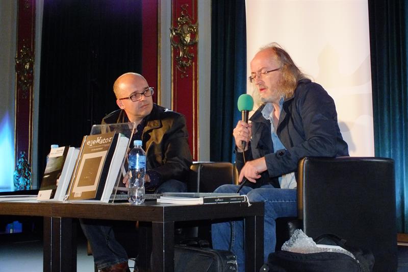 Poeta Zenon Fajfer (z prawej) podczas spotkania w Domu Kultury 13 Muz opowiadał o swojej nowej książce zatytułowanej "Widok z głębokiej wieży". Książkę opublikowało wydawnictwo FORMA. Z pisarzem rozmawiał Damian Romaniak. Poetyckie spotkanie było połączone z promocją szczecińskiego kwartalnika literacko - kulturalnego "eleWator", którego głównym tematem jest "eksperyment".