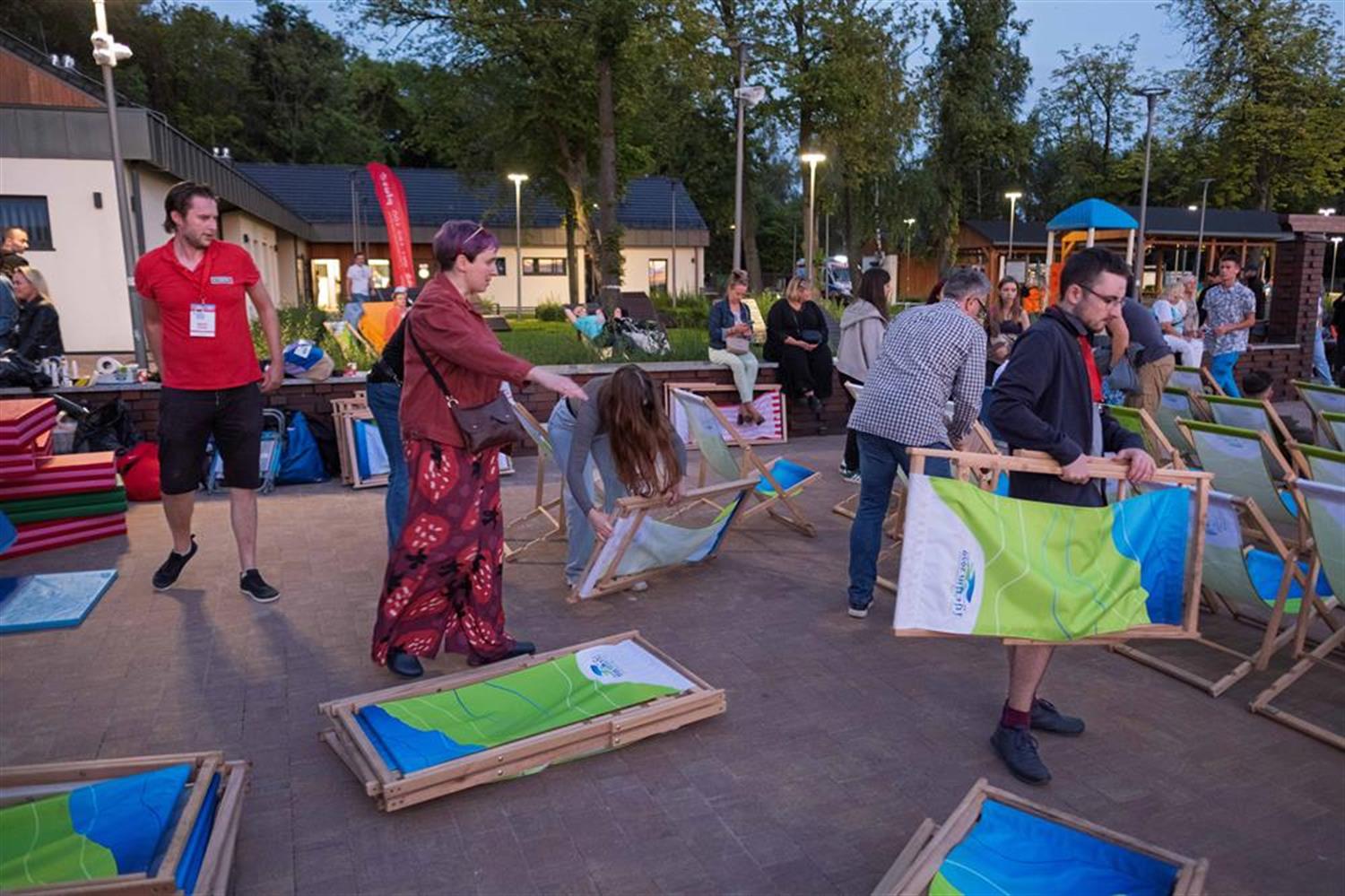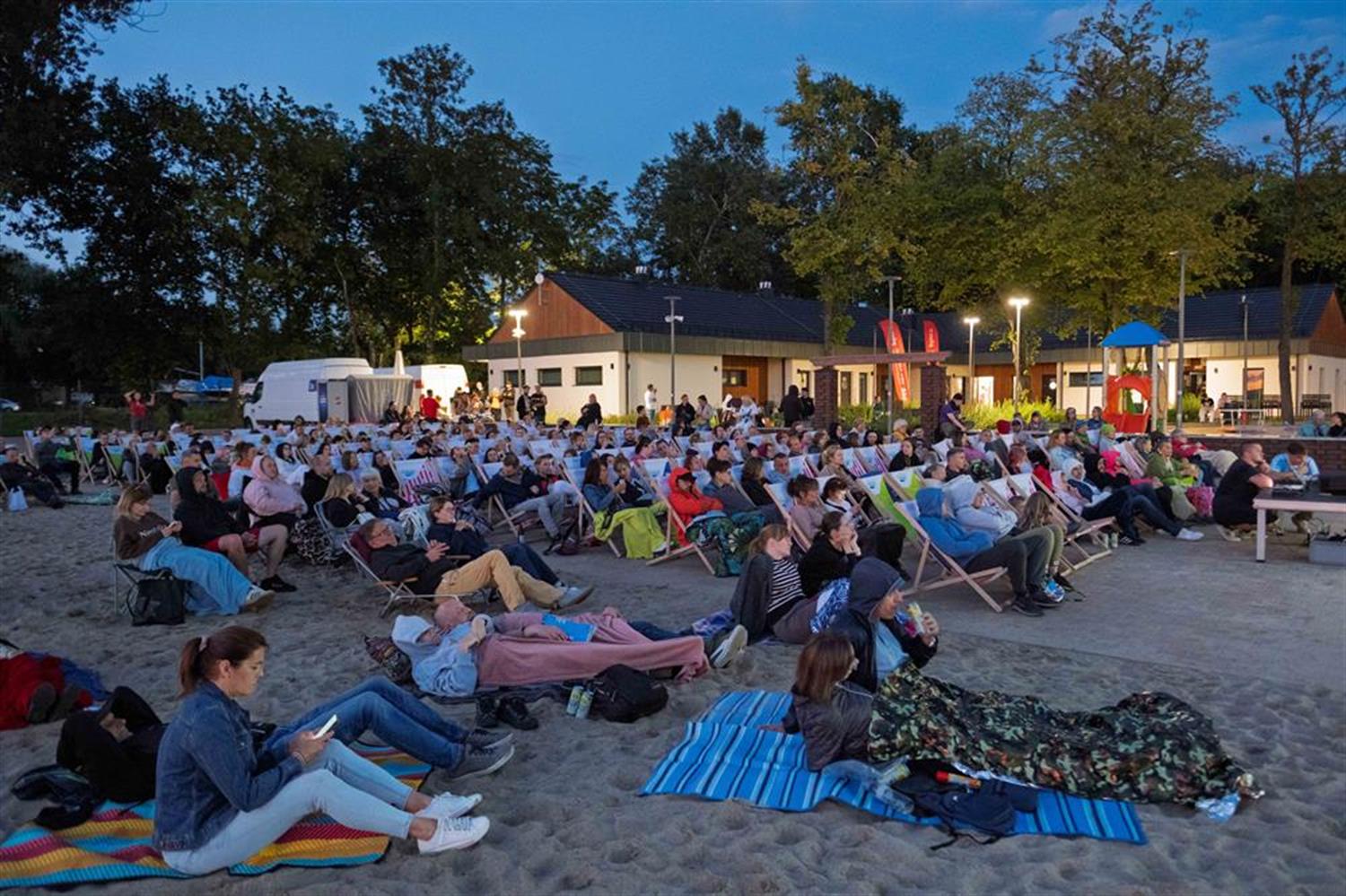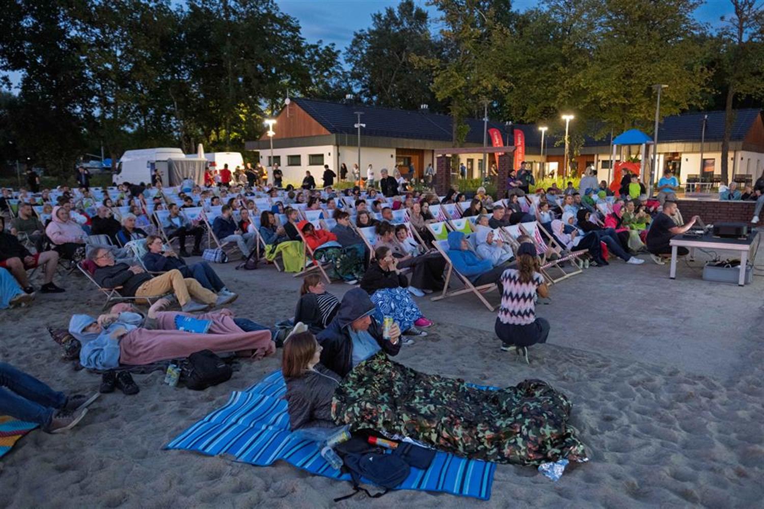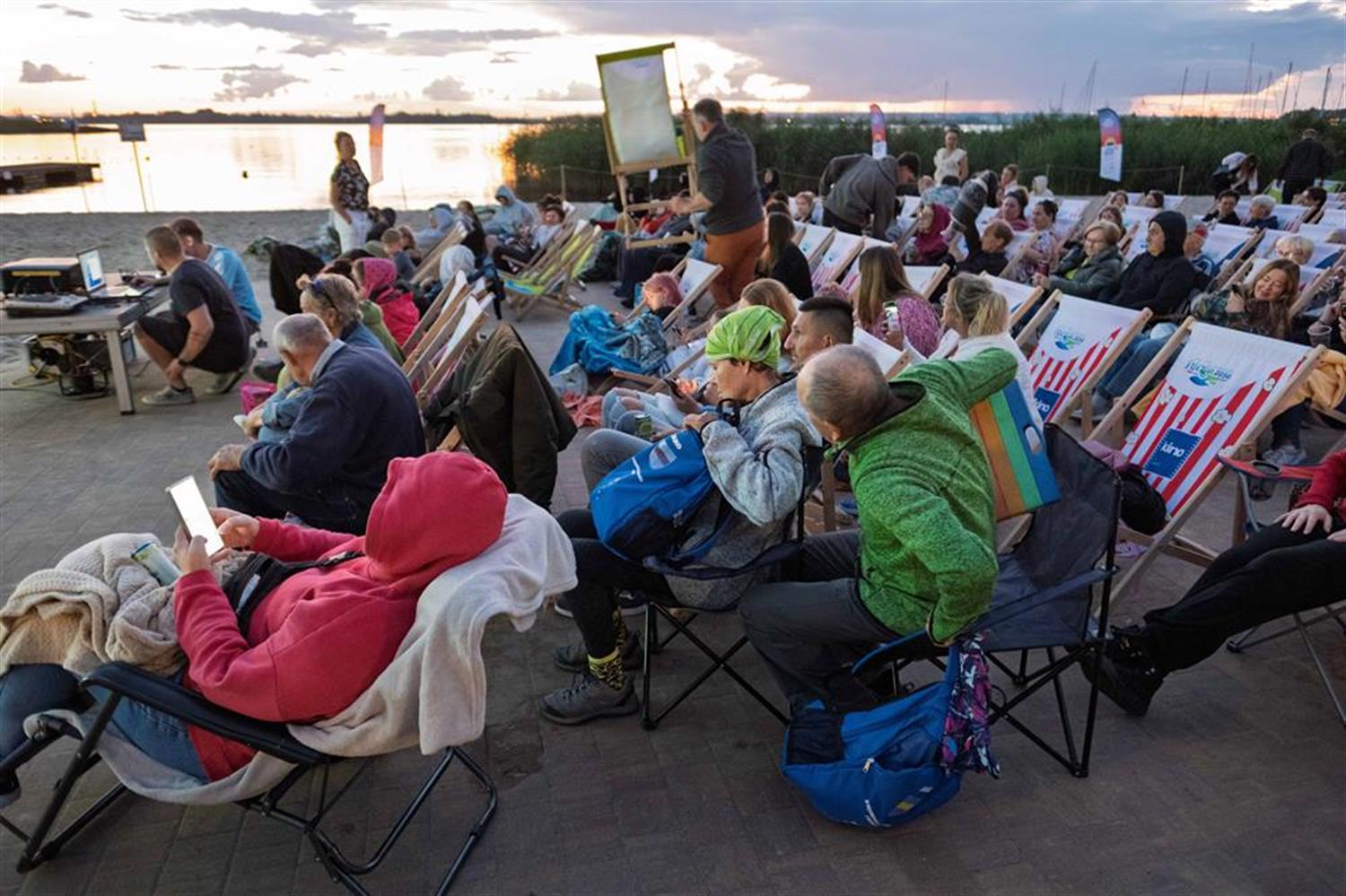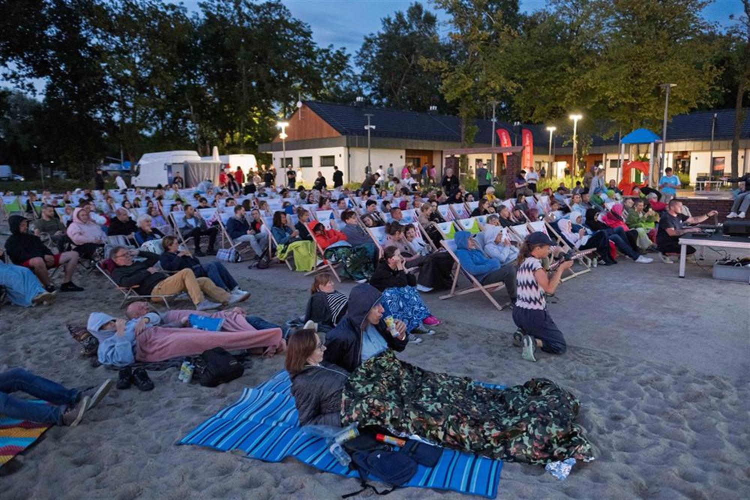 Widzowie zaczęli gromadzić się jeszcze przed g. 19:00, choć film planowano znacznie później. Organizatorzy przygotowali 200 leżaków, ale zapełniły się błyskawicznie. Ci, którzy przyszli później, przynieśli własne składaki, maty albo po prostu siadali wprost na piasku. W powietrzu unosił się zapach jeziora i sprayu na komary – lato w pełni.