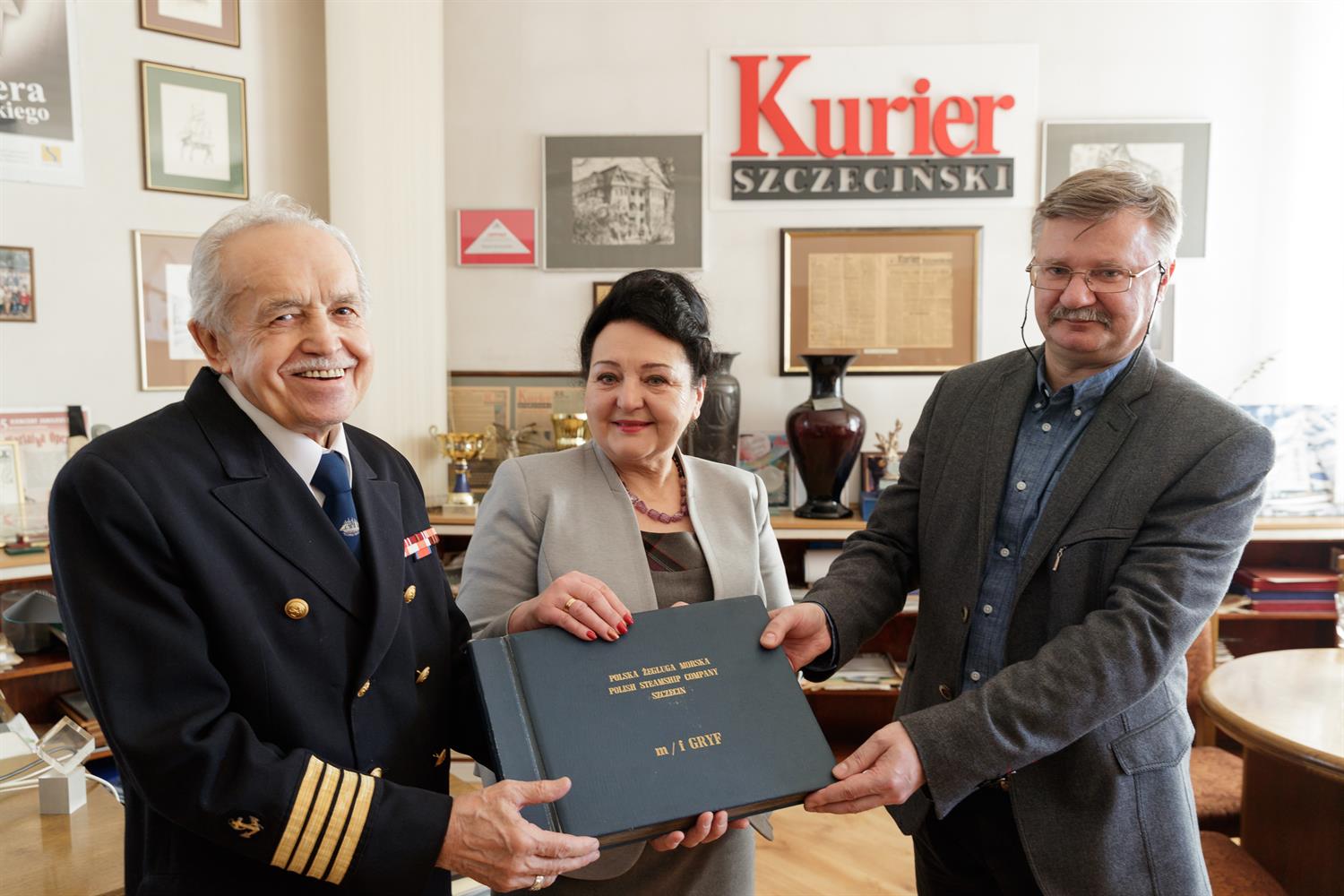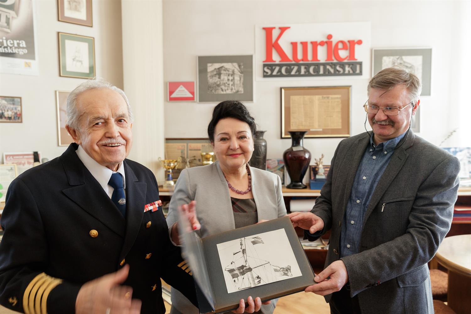 Na zdjęciu: Danuta Jasiecka, kpt.ż.w. Zbigniew Sak, Leszek Kocela i prezes - redaktor naczelny „Kuriera Szczecińskiego" Tomasz Kowalczyk.