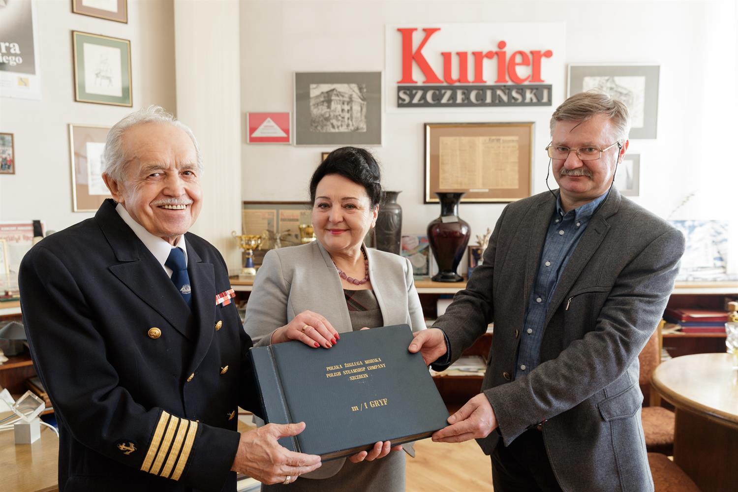 Kapitan żeglugi wielkiej Zbigniew Sak w piątek ofiarował Muzeum Narodowemu w Szczecinie album poświęcony promowi „Gryf". Zawiera zdjęcia szczecińskiego fotografa Macieja Jasieckiego. Przekazanie daru odbyło się w naszej redakcji.