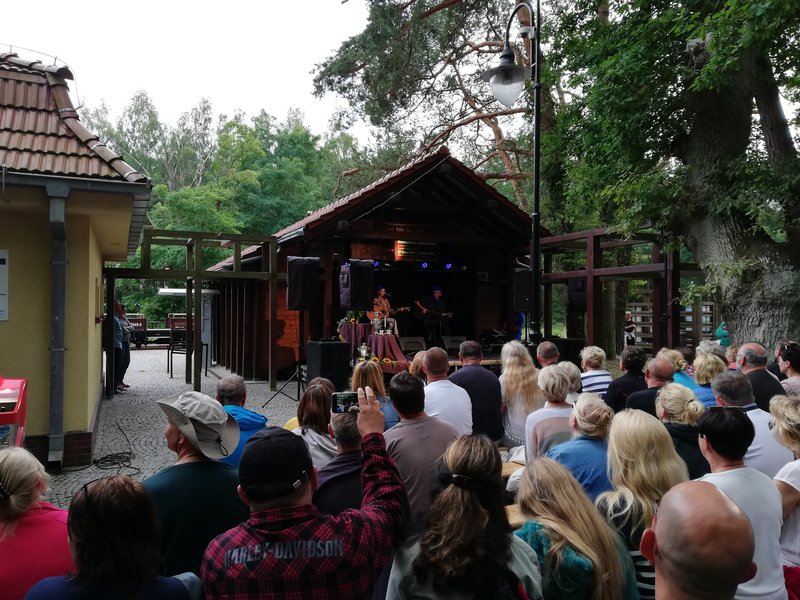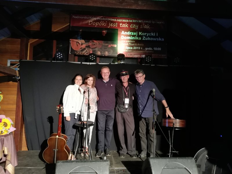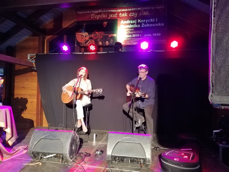 Andrzej Korycki i Dominika Żukowska to artyści bardzo znani miłośnikom pieśni żeglarskiej i poezji śpiewanej. W sobotnim recitalu artyści wykonali na pogorzelickim dworcu kolejki wąskotorowej najbardziej znane ballady rosyjskie z repertuaru Włodzimierza Wysockiego, Bułata Okudżawy i Żanny Biczewskiej oraz własne, autorskie kompozycje. Były także oczywiście szanty i inne utwory. Część widzów przybyła na koncert pociągiem, którym także wróciła do domu. Wspaniała zabawa, którą ufundowała wczasowiczom Nadmorska Kolej Wąskotorowa.