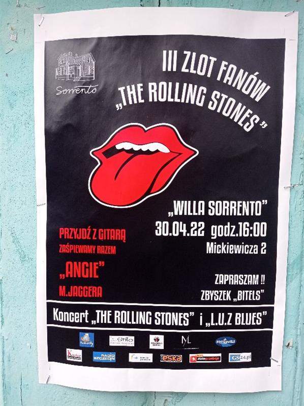 Trzeci „Zlot fanów The Rolling Stones” odbędzie się 30 kwietnia w Szczecinie. Każdy, kto ma jakiejkolwiek umiejętności gry na instrumentach, może w tym dniu przyjść do Sorrento na godz. 16, by wspólnie z innymi fanami zagrać utwór wspomnianej grupy pt. „Angie”. Potem będzie koncert coverów Stonesów w wykonaniu formacji Luz Blues.