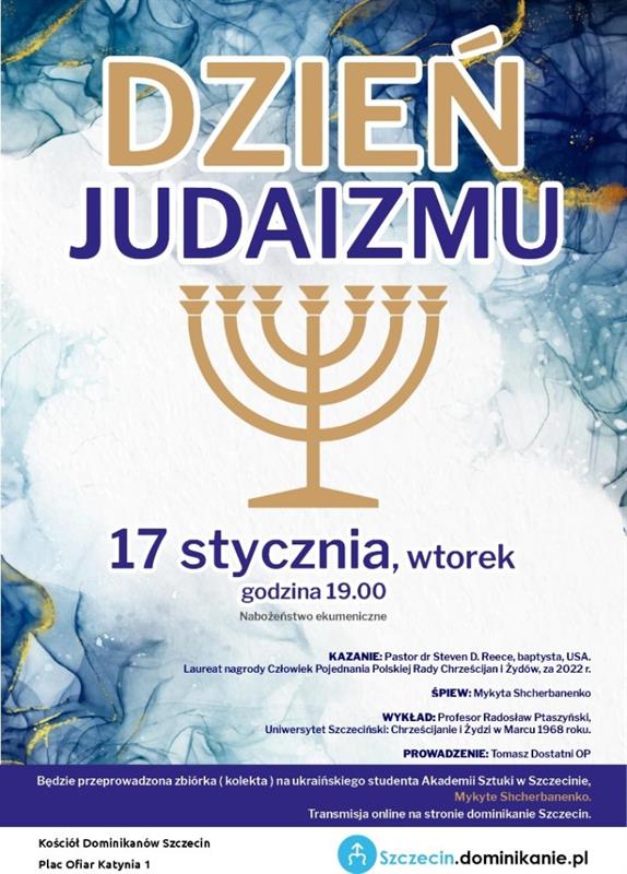 We wtorek 17 stycznia w Kościele katolickim obchodzony jest Dzień Judaizmu. Z tej okazji szczecińscy dominikanie zapraszają na spotkanie organizowane w ich kościele przy pl. Ofiar Katynia. Będzie ono miało charakter nabożeństwa ekumenicznego połączonego z wykładem.