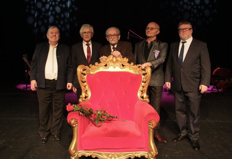 Gala była okazją do świętowania jubileuszu kilkudziesięciu lat pracy na scenie szczecińskich artystów (na zdjęciu od lewej): Piotra Krausa, Zbigniewa Wilczyńskiego, Adama Pfeiffera, Henryka Walentynowicza i Kazimierza Sowy. Niestety, zabrakło w tym gronie aktorki Pleciugi - Grażyny Wojtczak, która zmarła zaledwie kilka tygodni temu. Na macierzystej scenie artystka miała obchodzić 50-lecie pracy.