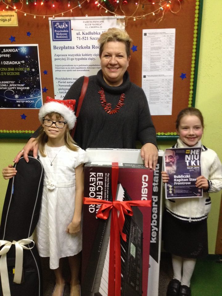 Zebrane fundusze przekazano na zakup instrumentów dla utalentowanych dzieci - keyboardu dla sześcioletniej Marysi i gitary dla jedenastoletniej Natalki (na zdjęciu, z Ingą Kurek-Baranowską ze „Słowianina"). Dziewczynki mają zatem już szansę rozwijać swój talent. Z kolei dzięki zakupionym przez publiczność cegiełkom na poprzednich koncertach, udało się też nabyć: wiolonczelę dla Kingi z Pyrzyc, pianino dla Mai ze Szczecina i flet poprzeczny dla Tamary z Gryfic. ©℗