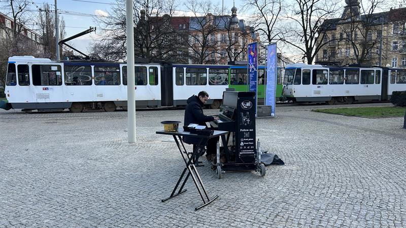 Pojawia się z pianinem na ulicach europejskich miast, zachwycając przypadkowych słuchaczy. Także mieszkańcy Szczecina od czasu do czasu, w różnych miejscach miasta (ostatnio m.in. pod Pomnikiem Czynu Polaków), mają okazję podziwiać jego grę.