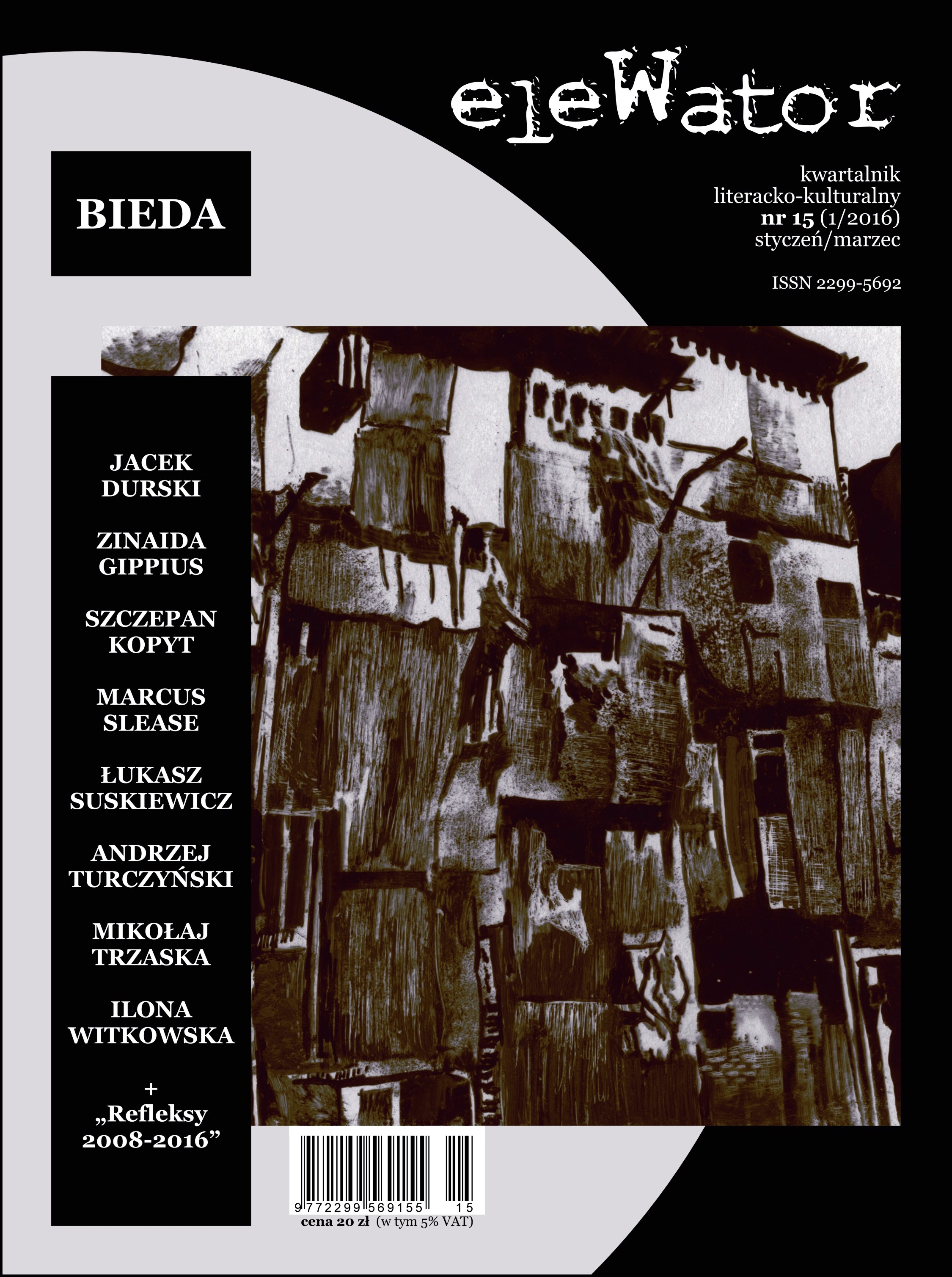 Temat numeru to "Bieda". Wśród autorów m.in.: Jacek Durski, Szczepan Kopyt, Andrzej Turczyński, Mikołaj Trzaska.