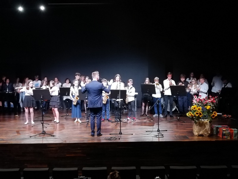 Koncert rozpoczął nonet trąbkowy, następnie m.in. trio na obój, saksofon i fortepian, zespół kameralny, kwartet fletowy oraz soliści. Aplauz publiczności wzbudziły występy przygotowane samodzielnie przez ósmoklasistów. I tak, 8a wykonała "Bohemian Rhapsody" grupy Queen, a 8b - "The Winner Tales IT All" Abby.