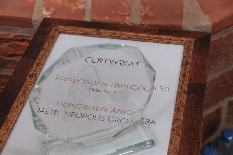 Podczas finałowego koncertu orkiestra przygotowała dyplom - niespodziankę dla dziennikarza "Kuriera Szczecińskiego" - Bogdana Twardochleba, który niedawno przeszedł na zasłużoną emeryturę (ale jako aktywny emeryt cały czas pisze i jego artykuły mogą Państwo nadal czytać na łamach gazety). Muzycy docenili, iż przez dwanaście lat (tyle właśnie istnieje szczecińska formacja) nasz kolega śledził ich poczynania, recenzował ich koncerty i festiwale, pisał o sukcesach - zawsze z ogromną pasją i znawstwem.