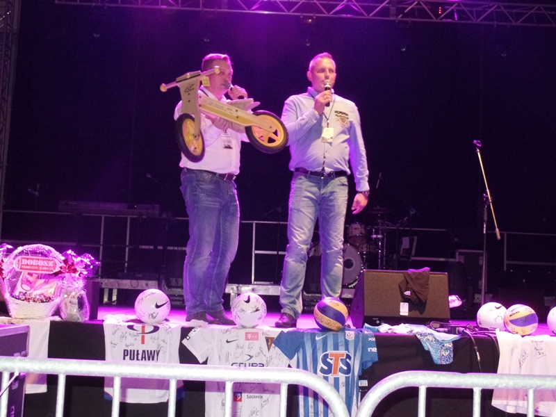 Imprezę poprowadzili: Dorota Szpetkowska wraz z Piotrem Kołackim i Andrzejem Rogowskim - oni też zachęcali (skutecznie) do licytowania podarowanych przez sportowców i przedsiębiorców przedmiotów. Cały dochód z imprezy zostanie przeznaczony na budowę hospicjum w Tanowie.