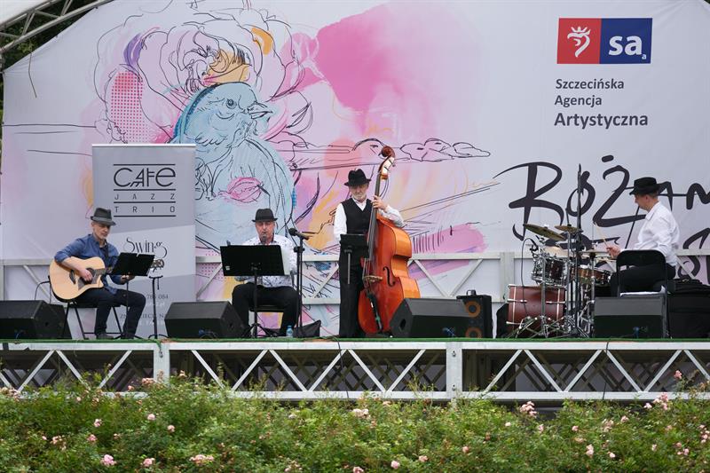 "Nie lubię poniedziałku", "Stawka większa niż życie", "Małżeństwo z rozsądku", "Jak rozpętałem drugą wojnę światową", "07 zgłoś się" - utworów z tych (i wielu innych) dzieł polskiej kinematografii posłuchać mogli widzowie niedzielnego koncertu w Ogrodzie Różanym. Zagrali je Cafe Jazz Trio w składzie: Krzysztof Marek (klarnet), Robert Jarzębski (gitara akustyczna), Janusz Jędrzejewski (kontrabas), Mariusz Lipiński (werbel).