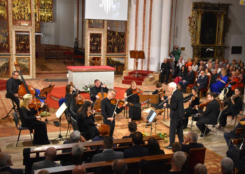 Po przemówieniach katedra wypełniła się muzyką. Tradycyjnie jako pierwsze zabrzmiały organy. Za ich kontuarem zasiadł warszawski wirtuoz, kameralista i pedagog prof. Bartosz Jakubczak. Ukończył Akademię Muzyczną im. Fryderyka Chopina w Warszawie w klasie organów Andrzeja Chorosińskiego oraz studia podyplomowe (z najwyższym odznaczeniem) w Royal Academy of Music w Londynie. W 2002 r. otrzymał nagrodę Prix de la Presse podczas konkursu Grand Prix Bach de Lausanne w Szwajcarii. W 2015 roku otrzymał tytuł honorowego współpracownika londyńskiej Królewskiej Akademii Muzycznej. W 2023 r. został odznaczony „Medalem za zasługi dla Uniwersytetu Muzycznego Fryderyka Chopina”. Ma na swoim koncie nagrania płytowe dla wytwórni Ars Sonora, Chopin University Press, Musicon. Od ubiegłego roku pełni funkcję kierownika Katedry Organów Uniwersytetu Muzycznego Fryderyka Chopina w Warszawie. Podczas ostatniego w tym roku festiwalowego koncertu prof. Jakubczak zaprezentował utwory Wolfganga Amadeusza Mozarta, Jana Sebastiana Bacha i Jehana Alaina, których wykonanie spotkało się z owacyjnym przyjęciem publiczności.