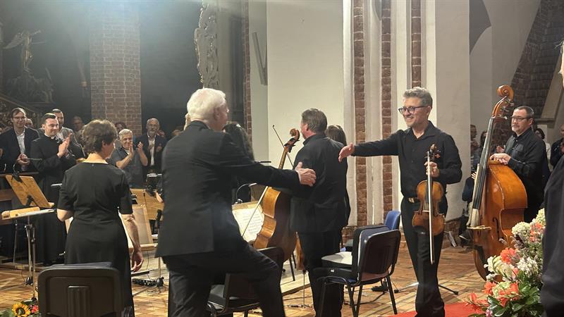 Orkiestra i solista pod batutą prof. Kusa zaprezentowali trzy części Koncertu skrzypcowego d-moll Felixa Mendelssohna-Bartholdy’ego wzbudzając zachwyt publiczności, która swymi oklaskami dwukrotnie zachęciła muzyków do bisowania, kończąc tegoroczny kamieński festiwal.