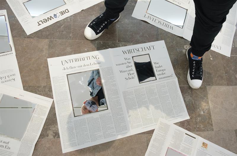 Na ekspozycji są gazety, które uległy niejako transformacji w wyniku artystycznych działań: są tu wycinki z mediów polskich i zagranicznych, fragmenty fotografii gazetowych zanurzone w wodzie (przedstawiające m.in. przywódców światowych mocarstw oraz flagi kilku państw), czasopisma, gdzie zamiast zdjęć znajdują się lustra (w których można się przejrzeć) albo też egzemplarze całkiem pozbawione obrazkowych treści, jak też stosy dzienników z fotografiami, na pierwszej stronie, jednego z czołowych polityków władzy rządzącej w Polsce.