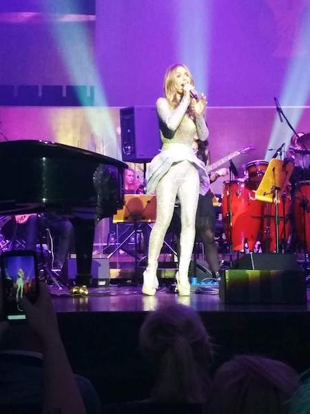Podczas koncertu artystka zaprezentowała kilka kreacji, przebierając się co trzy, cztery piosenki - wszystkie typu glamour, mocno błyszczące. Każde wejście na scenę, w kolejnym stroju, publiczność nagradzała brawami.