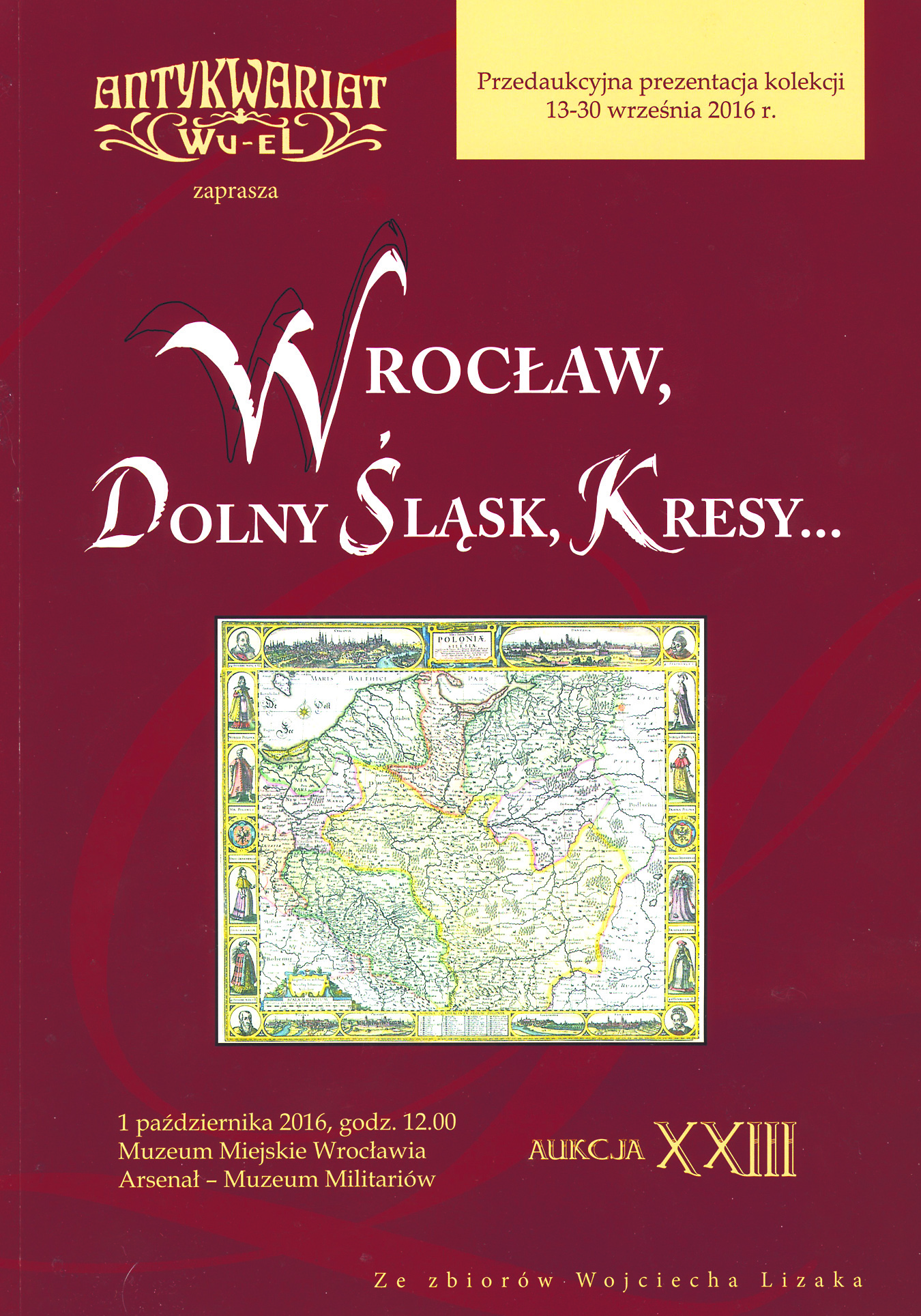 Do końca września na stronie internetowej www.artinfo.pl możemy oglądać prezentację kolekcji szczecińskiego antykwariusza, doktora Wojciecha Lizaka, która zostanie zlicytowana podczas aukcji 1 października w Muzeum Miejskim we Wrocławiu. Aukcja organizowana jest pod hasłem „Wrocław, Dolny Śląsk, Kresy…”. Licytować można telefonicznie.