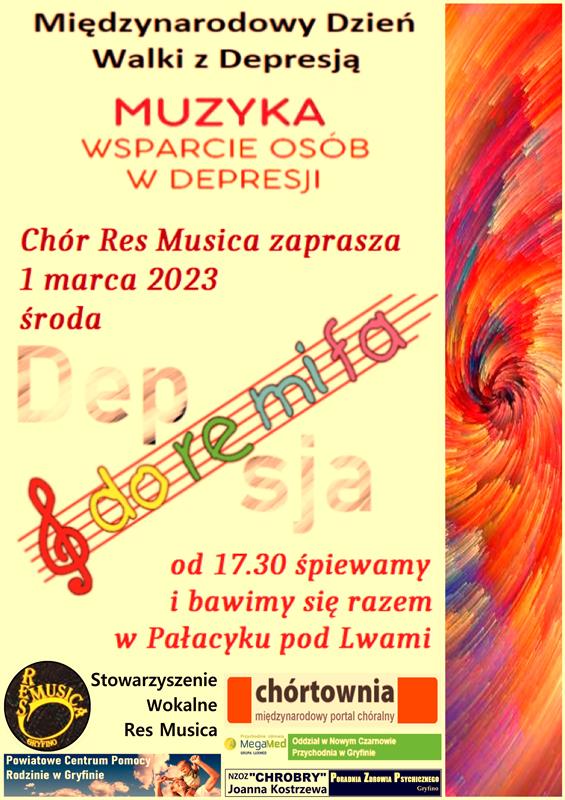 Stowarzyszenie Wokalne „Res Musica” z Gryfina zaprasza wszystkich chętnych na próbę otwartą, która zostanie przeprowadzona w ramach ogólnopolskiej akcji społecznej pn. „Muzyka – Wsparcie Osób w Depresji”.