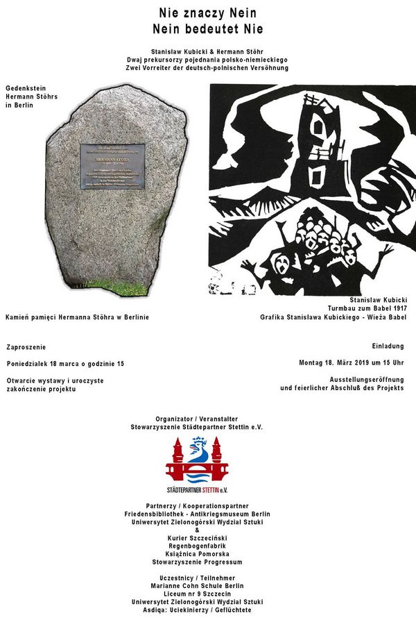 Zaprezentowane zostaną materiały, zebrane w latach 2015-2018 przez uczestników przedsięwzięcia, organizowanego w Berlinie i Szczecinie przez berlińskie Stowarzyszenie Partnerstwo Miast Szczecin-Kreuzberg/Friedrichshain (Städtepartner Stettin-Kreuzberg/Friedrichshain e.V.) i „Kurier Szczeciński” we współpracy z Książnicą Pomorską, Friedensbibliothek w Berlinie, Uniwersytetem Zielonogórskim i IX Liceum Ogólnokształcącym w Szczecinie.