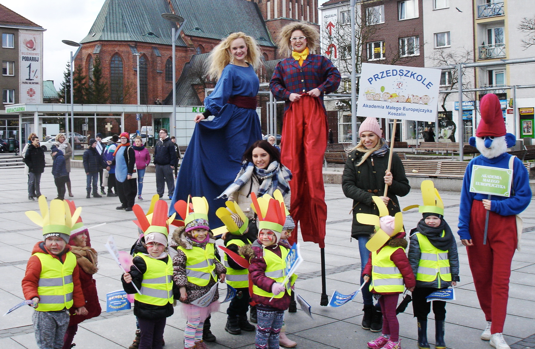 Radosny gwar i wesołe piosenki we wtorkowe przedpołudnie (21 marca) zwiastowały zgromadzenie maluchów na Rynku Staromiejskim w Koszalinie. Tradycji stało się zadość. Wiosenny korowód przebierańców rozpoczął drugi Dziecięcy Festiwal Sztuki Filmowej.