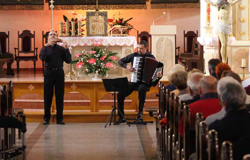 Na zdjęciu: Dumitru Harea (fletnia Pana) i Andrij Melnyk (akordeon) brawurowo wykonali kilka kompozycji.