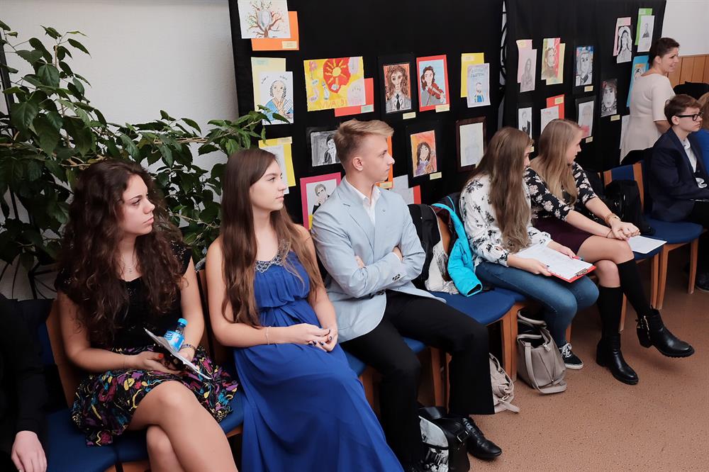 W ramach Tygodnia Języka Włoskiego na Świecie w Zespole Szkół Ogólnokształcących nr 4 przy ul. Romera w Szczecinie odbyły się we wtorek finały dwóch konkursów, plastycznego i piosenki włoskiej. Na zdjęciu młodzi muzycy, a na ścianie za nimi wyróżnione prace plastyczne.