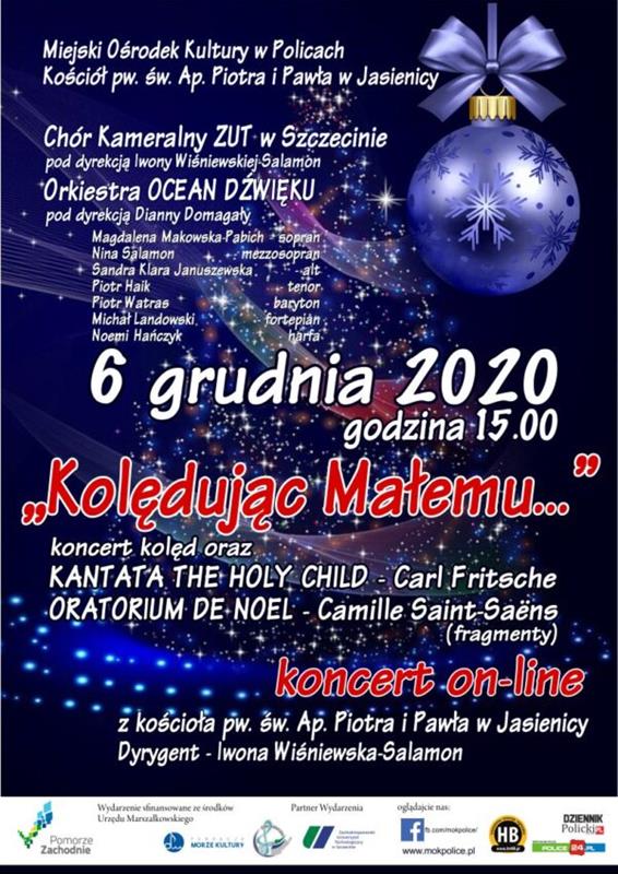 „Kolędując Małemu…” to koncert kolęd oraz fragmenty Kantata The Holy Child– Carl Fritsche i Oratorium De Noel – Camille Saint-Saëns. Soliści, którzy wystąpią to: Magdalena Makowska-Pabich – sopran, Nina Salamon – mezzosopran Sandra Klara Januszewska – alt, Piotr Haik – tenor, Piotr Watras – baryton, Michał Landowski – fortepian, Noemi Hańczyk – harf. Wystąpi także Chór Kameralny ZUT w Szczecinie pod dyrekcją Iwony Wiśniewskiej-Salamon oraz Orkiestra Ocean Dźwięku pod dyrekcją Dianny Domagały. Dyrygent koncertu – Iwona Wiśniewska-Salamon.