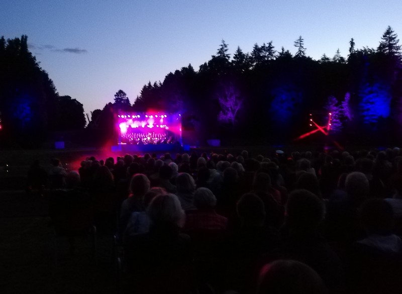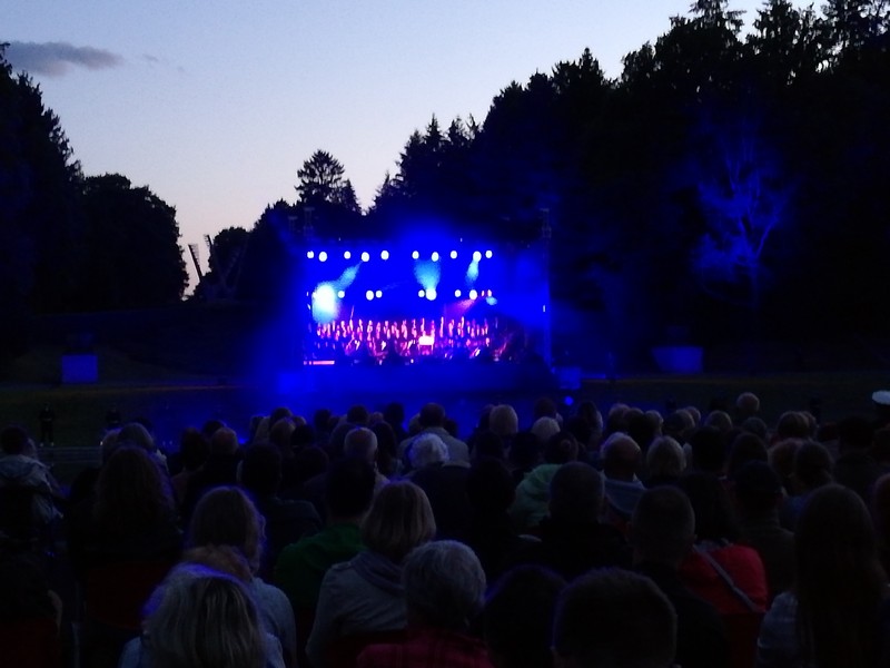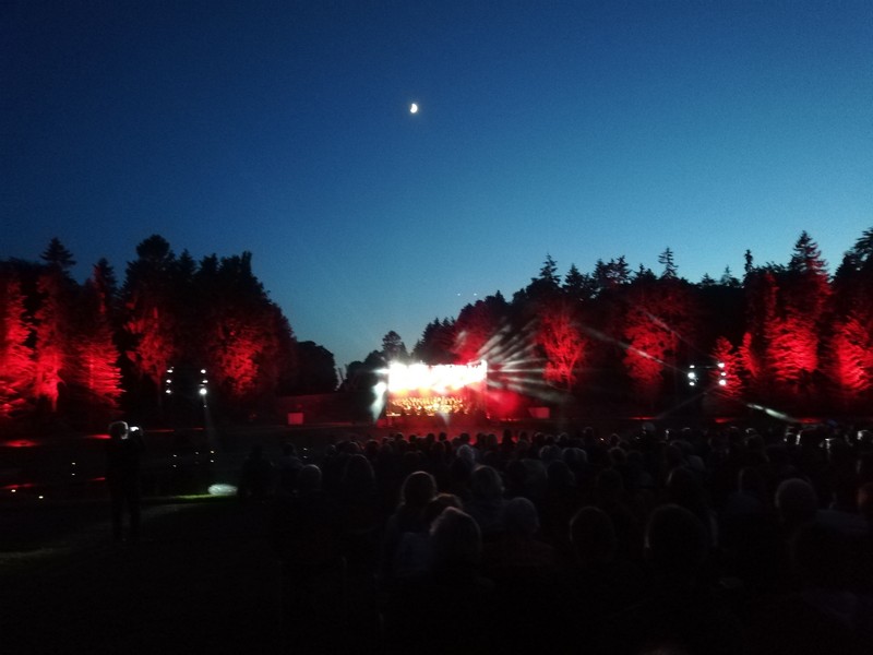 Nocne niebo było pogodne, był lekki chłód. Nad sceną, ustawioną za stawem naprzeciwko kaplicy głównej i licznie zgromadzonych szczecinian, świecił księżyc w nowiu.