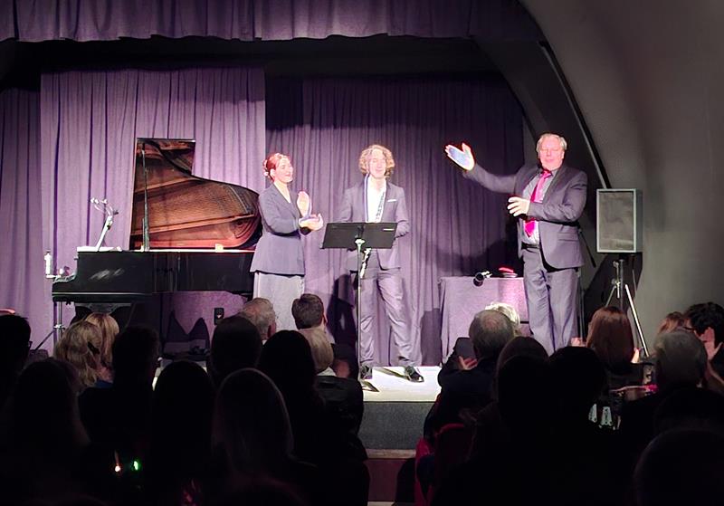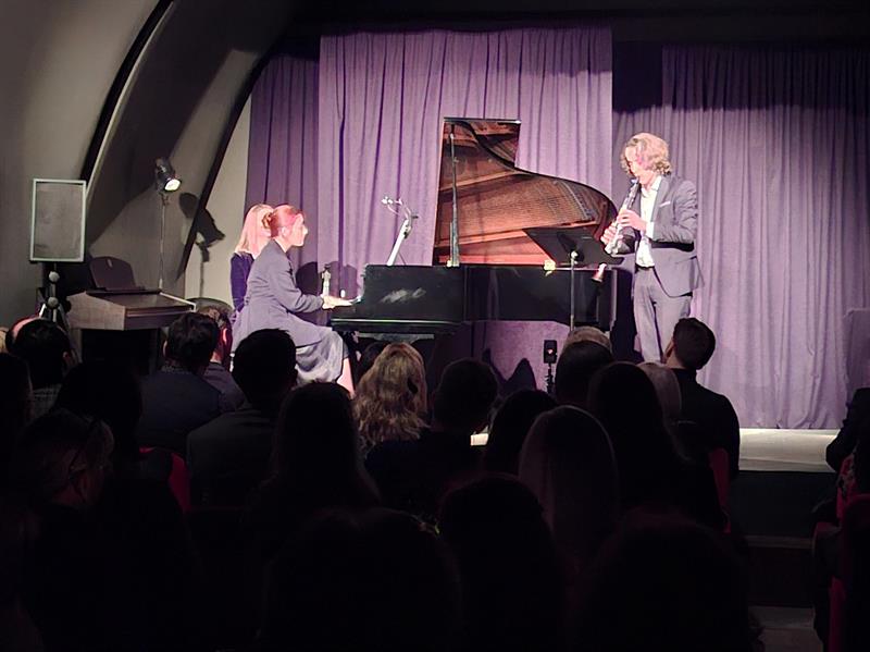 Koncert, w którym wystąpili młodzi muzycy: Armand-Witold Fessard (klarnet, fortepian) oraz Isabella Voropciuc (fortepian) przeniósł w zimowy wieczór zgromadzoną w teatrze publiczność do Wiednia, Nohant, Paryża, a nawet odległej gorącej hiszpańskiej prowincji. Stało się to możliwe dzięki utworom, jakie rozbrzmiewały ze sceny, jak również za sprawą rozmów, które młody instrumentalista prowadził z uznanymi kompozytorami. Część wykonywanych przez muzyków utworów była bowiem przeplatana konwersacją w formie słuchowiska. Prowadzili ją muzyk o imieniu Alfred kolejno z trzema wielkimi kompozytorami: Janem Sebastianem Bachem, Wolfgangiem Amadeuszem Mozartem i Fryderykiem Chopinem. Głosu postaciom znanym ze świata muzyki użyczył aktor i dyrektor Teatru Kameralnego Michał Janicki, zaś w rolę Alfreda wcielił się Armand-Witold Fessard, który także wykonywał kompozycje swych rozmówców. Słuchacze mogli zatem wysłuchać znanych utworów, ale także dowiedzieć się o życiu i twórczości, a także dramatach, miłościach oraz muzach tych twórców.