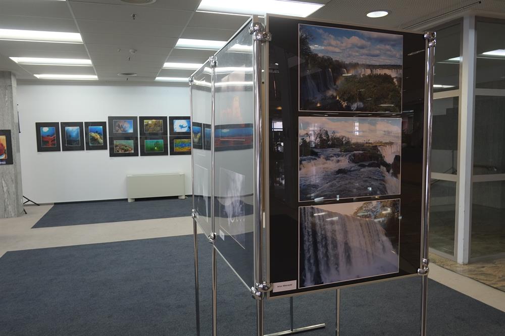 Fotografii w sali Pod Piramidą jest kilkadziesiąt. Bardzo różnorodnych: od krajobrazów po zdjęcia podwodne. Ich motywem przewodnim jest woda, a podejście do tematu swobodne. Zobaczymy zatem piękne świetlne refleksy na wodnych taflach, uchwycone przez Zygmunta Niedźwiedzia, czy oklejone szadzią drzewa Małgorzaty Światłowskiej-Bajzert. Są klasyczne pejzaże Jacka Rudnickiego i kolorowe bogactwo fauny ciepłych mórz Dariusza Pietruszki. Jest cały dział ze zdjęciami makro kropel na kwiatach czy liściach, ale i ujęcia lodu, kry, mgły, wodospadów, kanałów i rzek. Poza bogactwem treści jest tu również żonglowanie nastrojem, barwą i formą.